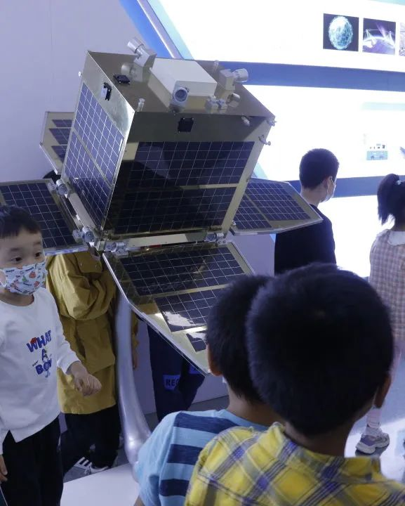 第二站,孩子们来到卫星与大数据应用技术研究中心,近距离感受科技的魅力,工作人员用通俗易懂的语言为大家讲解研究中心的微小卫星知识,并带领孩子们参观卫星展厅及卫星塔。“他们是怎么飞上天去的?”“这是他们的翅膀么?”孩子们提出各种奇思妙想的问题,表现出了对航天卫星科技的兴趣,气氛十分活跃。