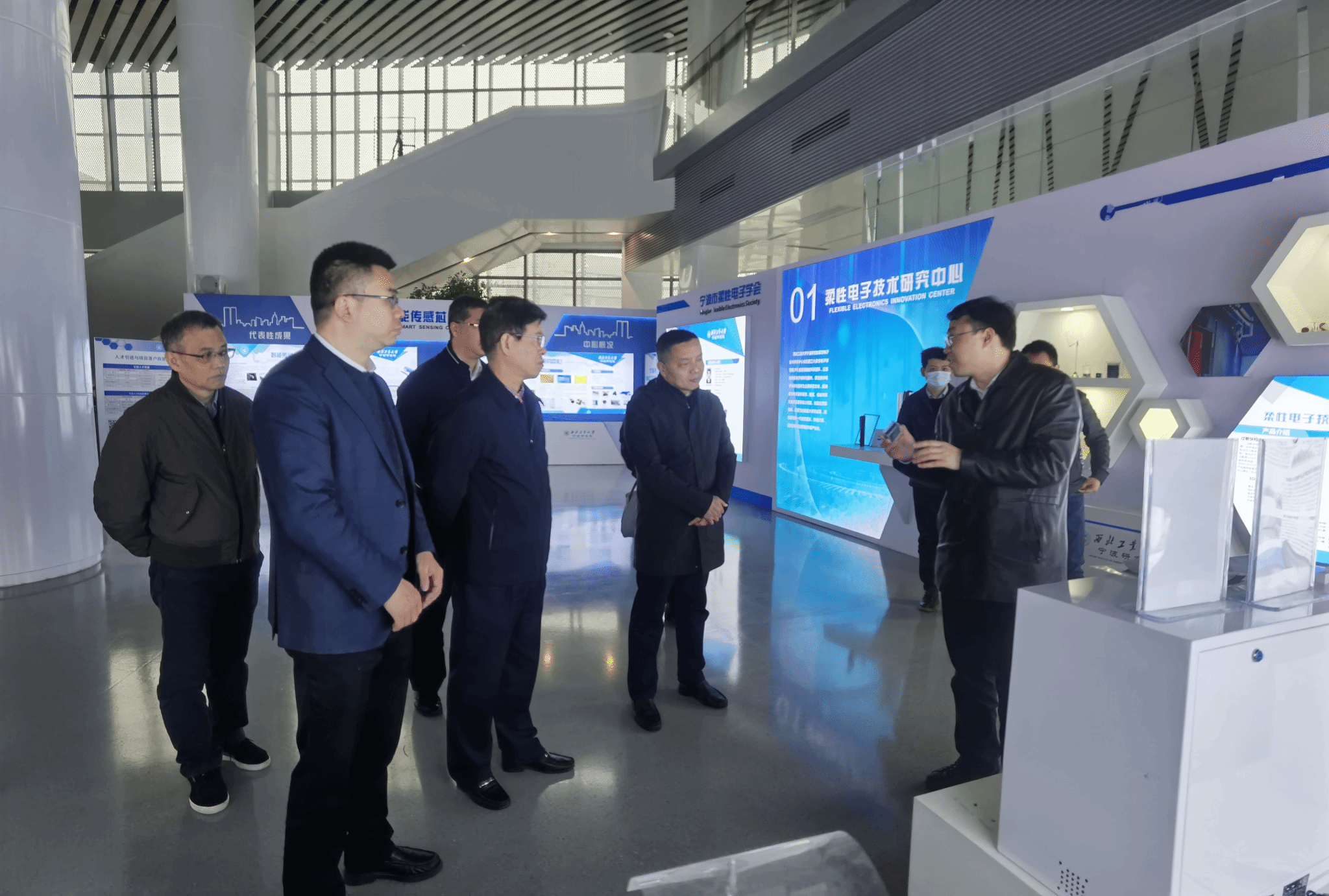 在科技成果展厅,盛其杰院长介绍了伟德 柔性电子、智能芯片、民用航天、无人航行、卫星大数据等五大技术中心科技创新情况。随后,蔡铭一行参观了卫星与大数据浙江省工程研究中心、智能传感芯片加工线、柔性电子浙江省重点实验室等创新平台。